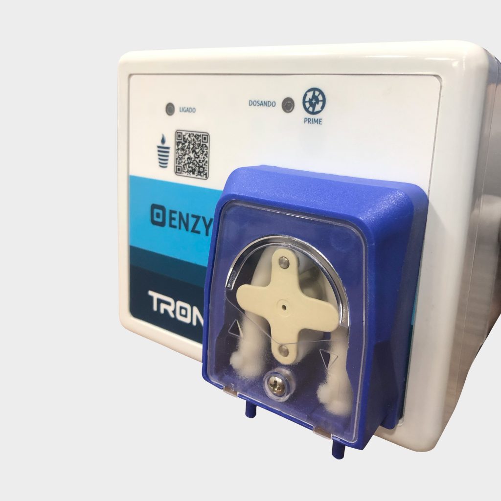 • O equipamento ENZY tem a função de ligar e desligar automaticamente o sistema , ele possui uma bomba peristáltica e um programador digital semanal – PDS